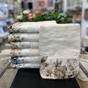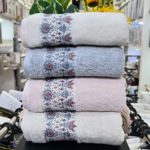 • 100% coton peigné • 500–600 g/m² moelleux • Bordure dentelle raffinée • Absorbante & durable